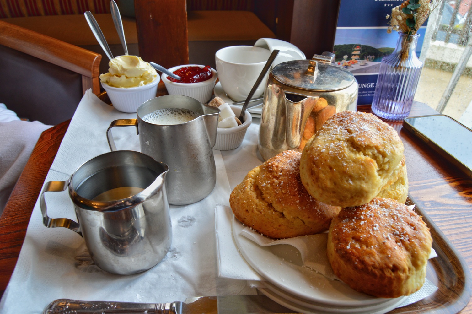 The continuous downpour outside was quickly forgotten as we retreated to the lounge for their legendary Devon Cream Tea—a ritual dutifully performed in the Devonian manner, with a generous foundation of clotted cream applied first, followed by the jam.