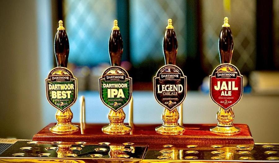 The bar has the local Dartmoor brewery ales, lagers, ciders, and guest drinks. Tea and coffees also are available.