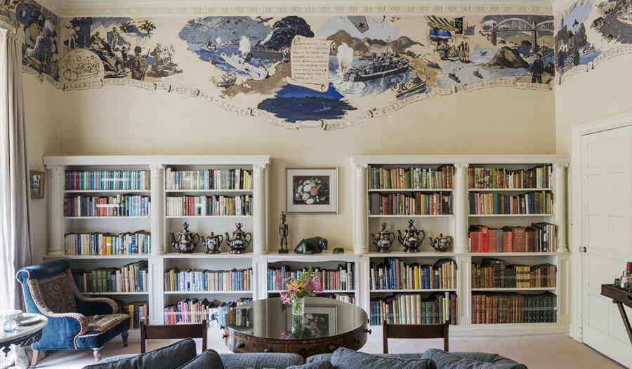 This relaxed and atmospheric house is set in the 1950s, when Agatha and her family would spend summers and Christmases here with friends, relaxing by the river, playing croquet and clock golf, and reading her latest mystery to their guests. The family were great collectors, and the house is filled with an important and varied collection of ceramics, Tunbridgeware, silver, and books, including first editions of her novels. It is also home to archaeological artefacts acquired in the Middle East where Agatha accompanied her husband, archaeologist Max Mallowan on excavations. In the library a frieze was painted in 1944 when the house was requisitioned by the US Coastguards as part of the preparations for D-Day.