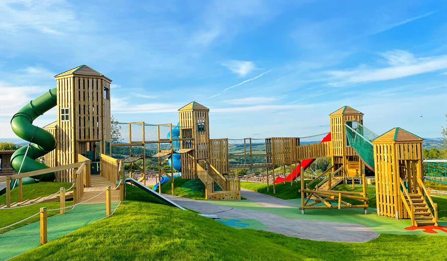 Let the kids bounce out any excess energy on the trampolines dotted around the farm as well as the HUGE bouncy castles and inflatable slide inside Noah’s Barn. Shoot a winning score on our Crazy Golf course, see how low you can go! Let your budding young farmers test their driving skills in the Pennywell Tractor Village and, if you’re feeling energetic, have a go on our assault course (great for fun-loving adults) too! Around the farm, you will find sit-on diggers, sandpits, play equipment, and slides, as well as a dedicated play village for toddlers to play in. PLUS we have our NEW Treetops Adventure Towers, perfect for the older kids to climb and explore, with 3 of the biggest slides you’ll find for miles!