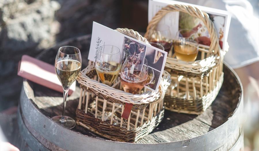 Sandridge Barton, 'the Home of Sharpham Wine' is a renowned wine producer set within the South Devon National Landscape. Situated in a sheltered valley at Lower Well Farm with vineyards on the banks of the river Dart, we have the perfect climate and location for growing ripe grapes and producing a diverse range of English wines. At our brand new winery visitor centre we offer both guided and self-guided wine and cheese tastings as well as vineyard and winery tours that can all be pre-booked online. We have a small farm shop selling our range of wines, Sharpham Dairy cheeses and other local produce, and you can walk around our various woodland and vineyard trails or have lunch in our restaurant.