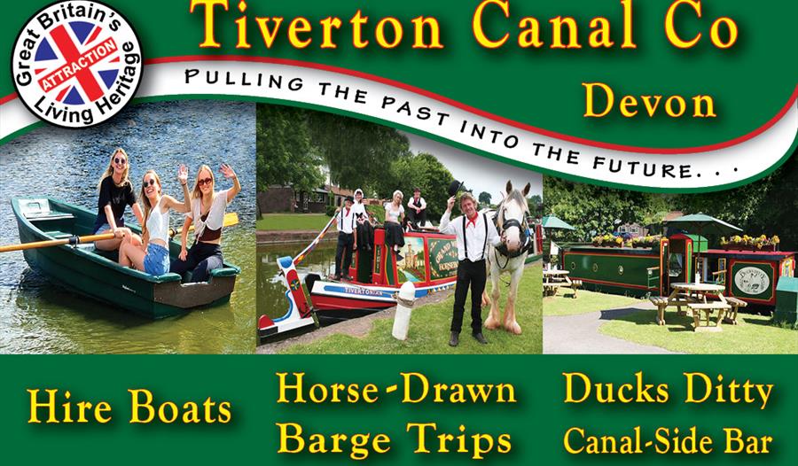 For the Horse-drawn barge trips timetable, boat hire charges, Ducks Ditty Bar opening times and Maps, please visit www.tivertoncanal.co.uk