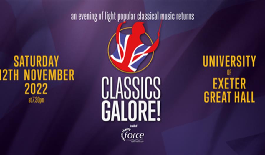Classics Galore! is back for 2022. Exeter's very own Last Night of the Proms will be held at the University of Exeter Great Hall on Saturday 12 November raising money for FORCE Cancer Charity.