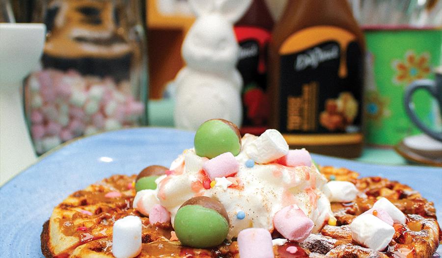 Choose your favourite Easter themed ceramic to paint from the selected range before heading to our 'waffle station' where you can decorate your waffle with Easter treats. Includes a milkshake for the children or a hot drink for the adults.