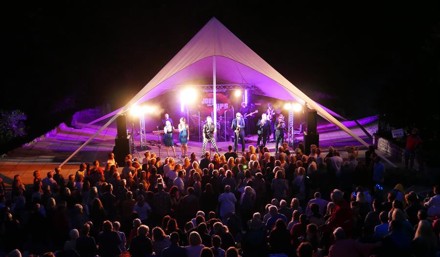 All seating on grass banks and terraces. There is also an easy access deck for disabled visitors, who should telephone beforehand to book a space on the deck. (Chairs allowed only on the access deck. Please bring your own chairs!).
