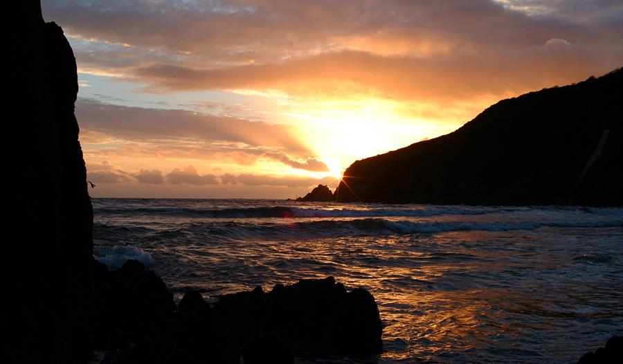 A tiny remote sandy inlet set below the craggy black towers of Bolt Head. Access only on…