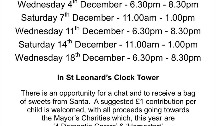 Join Santa in his grotto at St Leonards Clock Tower, Newton Abbot.
