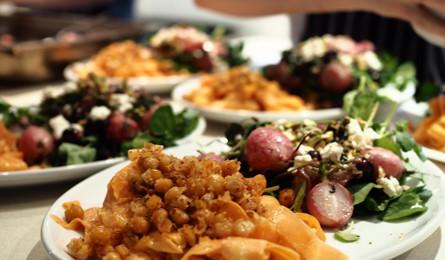 Once you have taken the turning for 'Riverford Organics', continue for approximately half a mile. You will reach the main entrance to Riverford. Do not take the turning on the left; instead follow the signs for The Riverford Field Kitchen, which has its own carpark 500m up the road. Upon entering the carpark, drive to the far end where spaces are reserved for Field Kitchen customers.