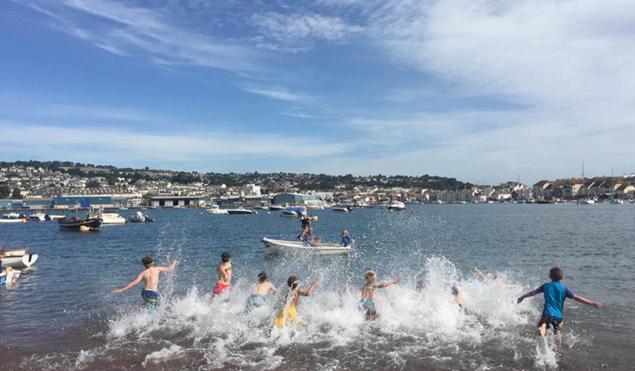 Bus to Shaldon and walk through the village to where the ferry lands or catch the ferry from Teignmouth back beach to Shaldon