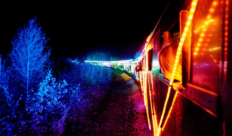 Your festive illuminated journey starts at Queen's Park Station, Paignton, where our train with vintage carriages await you - decorated with thousands of lights, both inside and out. Fifteen minutes later, once you've had time to settle back into your seat, you will arrive at Churston Station where the show begins. As the anticipation builds and minutes after leaving Churston, you will be propelled through the 450-metre Greenway tunnel that leads you to the enchanted forest which will be transformed by a multitude of lights with brand new feature displays - plus some old favourites! The stunning show ends as you leave the forest only to be greeted by the twinkling lights of Dartmouth reflected on the river Dart. After a turnaround at Kingswear and with the opportunity to disembark and take photographs from the platform, you will be on your way back to Paignton to experience the spectacle from a different direction.