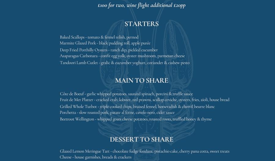 Treat your special someone to an unforgettable evening! For £100 for two, indulge in a delightful dinner on Friday, 14th February. Don't miss out on our exquisite wine flight to complement your meal!