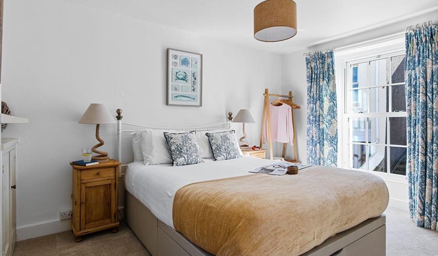 Within easy walking distance of the harbour, restaurants, shops and Brixham’s famous fish quay, the cottage which tucks itself away on Mount Pleasant Road also has its own garage parking and pretty courtyard garden. Recently refurbished but still with original features, the atmosphere inside is cosy and welcoming with tasteful, contemporary furnishings sitting beside sash windows, exposed beams and fireplaces.
