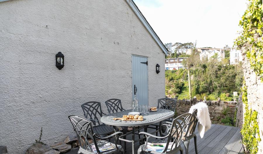 Outside, the secluded courtyard and decking terrace make the most of warm weather relaxation and entertaining, where morning coffees or afternoon meals can be enjoyed in the fresh sea air and sunshine.