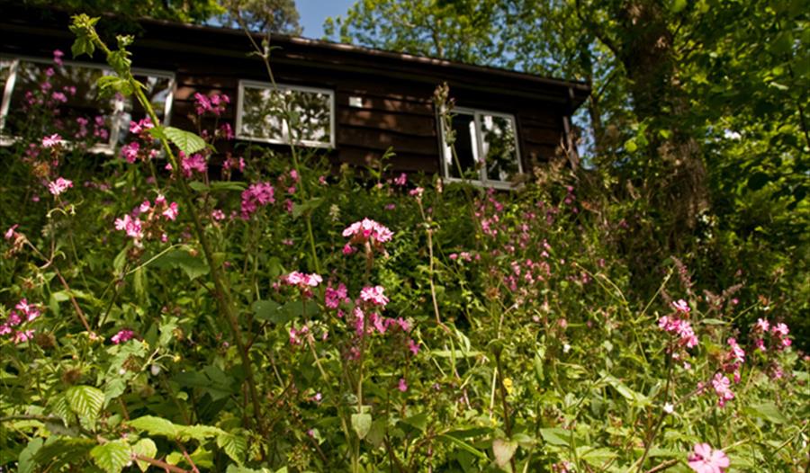 Each holiday cabin has its own plot on the hillside, surrounded by trees, flowering shrubs, hedges and rustic fences. All our cabins have views across the valley, with some looking out over the water meadow or towards the sea.