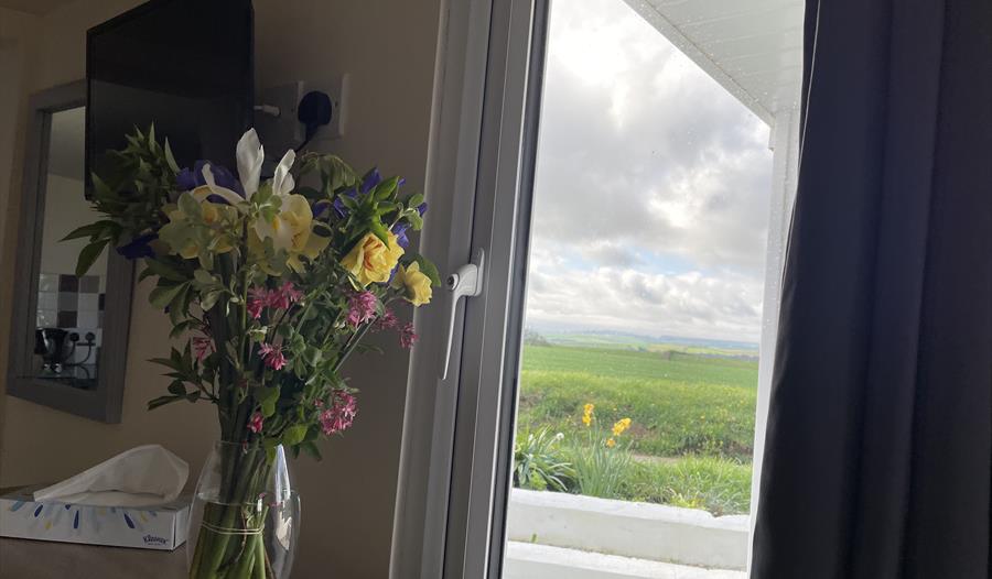 The cosy cabin is situated to give you stunning views over the countryside towards Kingsbridge and Salcombe.