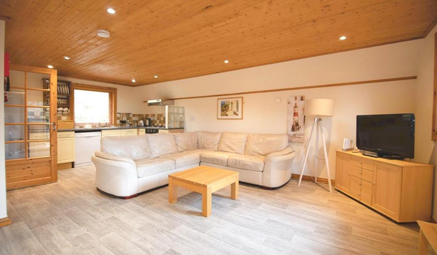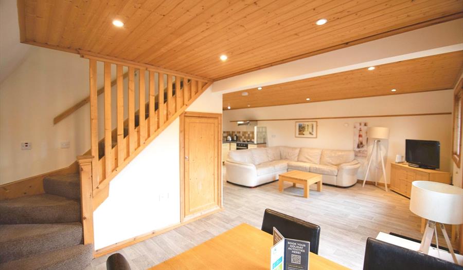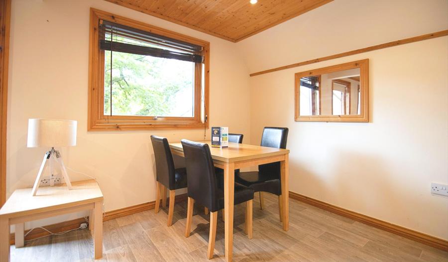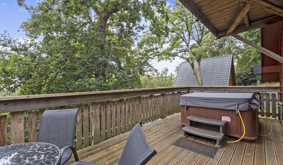 This luxurious lodge offers a spacious living area with comfortable furnishings, an open-plan layout, and a fully enclosed patio with a picturesque view with afternoon and evening sun. Additionally, it boasts an outdoor hot tub and is conveniently situated within a 10-minute stroll from the resort amenities such as the swimming pool, gym, and spa.