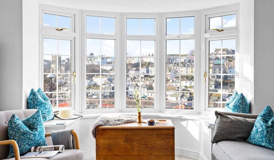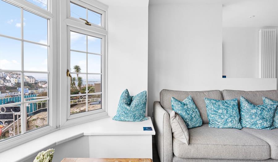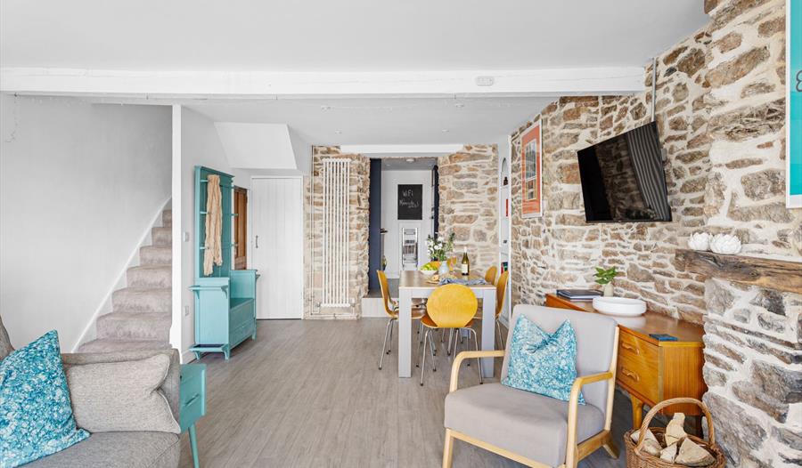 Perfect for holidays with family or friends, there's plenty of gorgeous space to enjoy. The inviting ground-floor sitting room has a fabulous bay window framing the views, and a log-burner for warming up on winter afternoons. Curl up on the sofa with a good book after a morning out exploring the coastline, gather around the dining table for meals and board games, and unwind on the fantastic front terrace with coffee or sundowners alfresco while taking in the scenery.