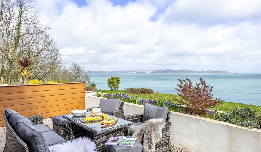 Resting in a fantastic position overlooking Fishcombe Cove and boasting plenty of stylish space both inside and out, Osprey 3 at The Cove is everything you could wish for from a beach retreat, making it the perfect place for holidays with family and friends. Positioned on the ground floor, this apartment is one of the largest at The Cove, and offers spacious open plan living cooking and dining, all with wide sea views of Tor Bay as the backdrop. Large sliding doors from the lounge out to the terrace mean that when the weather is warm, guests can enjoy that quintessential inside / outside lifestyle so that days are filled with relaxation in the sunshine, and evenings with sundowners and conversation, a glass of bubbly in hand.