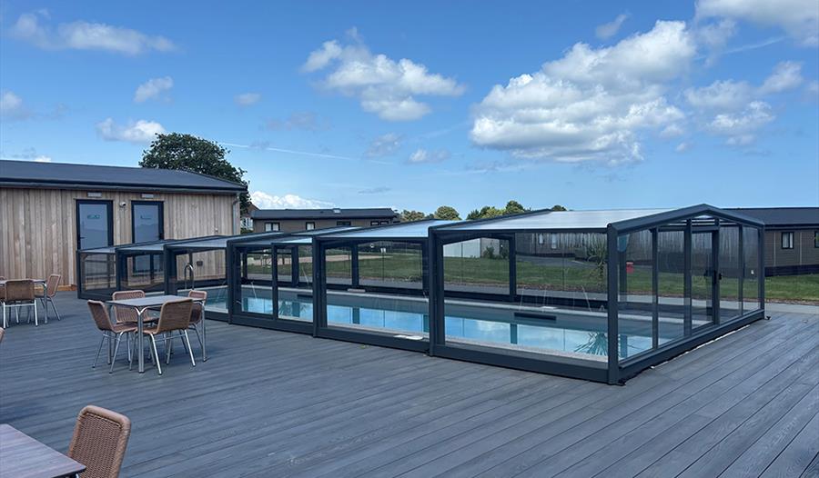 We're delighted to introduce our new seasonal outdoor swimming pool and modern facilities building that opened in 2025. Guests can also enjoy a well-equipped fitness room, as well as a welcoming bar and café—the perfect spot to relax with a drink or light bite while taking in the coastal surroundings.