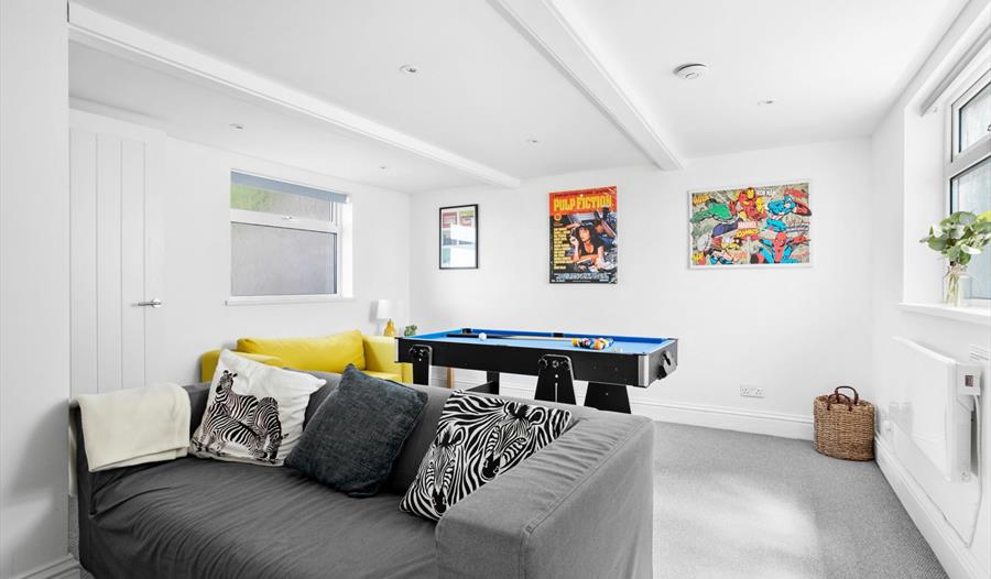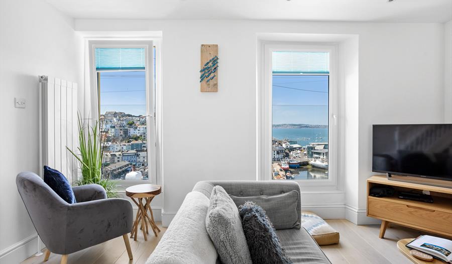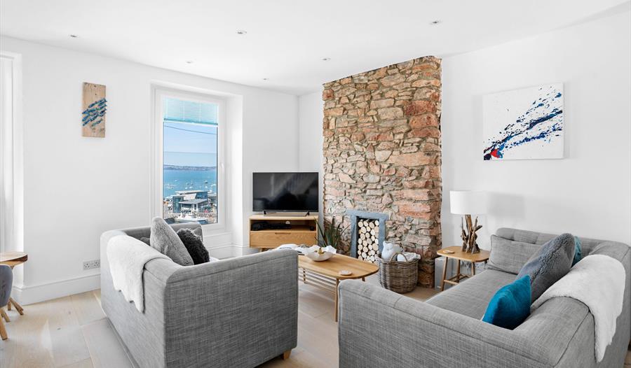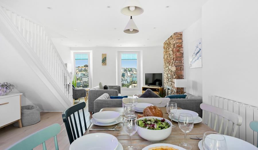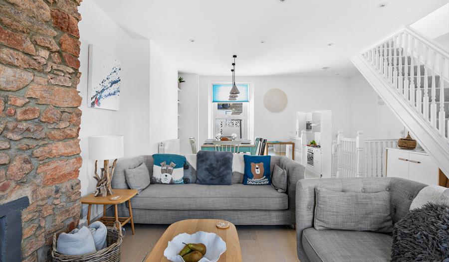 Perched high up on North View Road, The Captain’s Cottage claims some of the best views in Brixham, its humble Victorian terrace facade concealing a beautifully designed, contemporary interior. Recently refurbished to a superb standard, the house which sleeps six, boasts three immaculate bedrooms along with airy open plan living / dining, a high spec kitchen, two bathrooms and an outdoor utility and games room. Gorgeous furnishings, fabulous wall art and contemporary styling are surpassed only by the exceptional views of the harbour and bay which can be enjoyed from all three floors of the cottage, so whether early risers or night owls, guests can witness the changing moods of the sea and town below from their own unique vantage point.