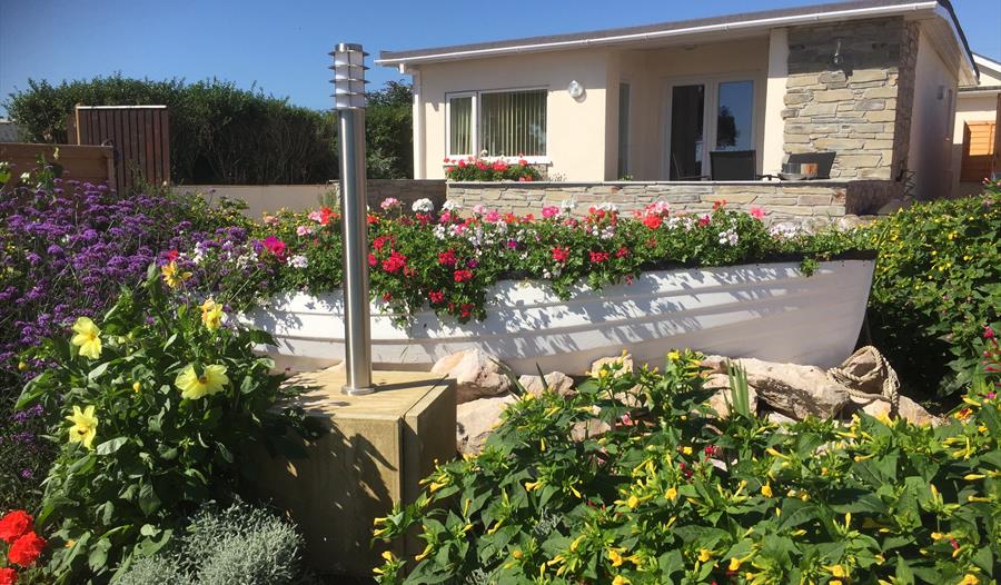 Outside offers a large seating area with picnic table and chairs or loungers and gas barbecue, along with your own colourful garden for relaxing and enjoying the countryside views.