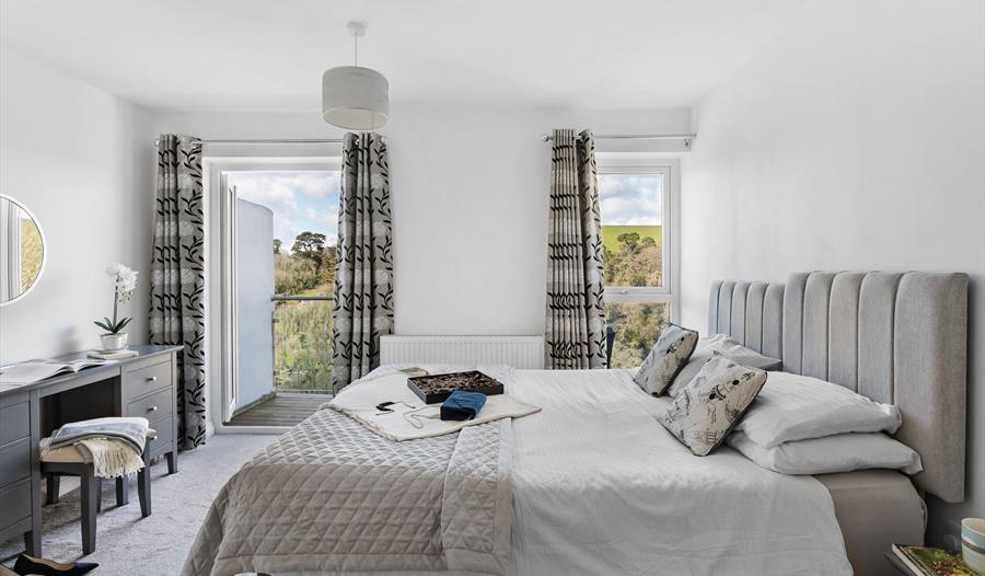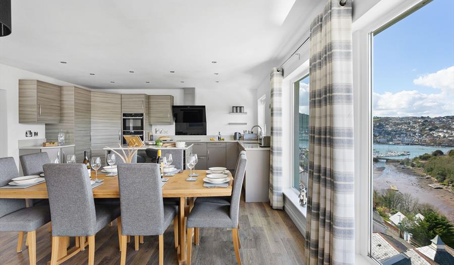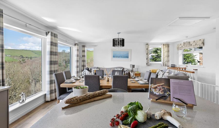 Designed to make the most of its elevated position, the aptly-named Treetops which has been built into the hillside, commands extraordinary views not only of Waterhead Creek and the River Dart below but also of the surrounding countryside, with floor to ceiling glass showcasing every inch of the home’s beautiful setting. With plenty of space for eight, each of the four big bedrooms is en-suite so the house is especially suited to multigenerational family groups or as a luxury getaway for four couples. Set over three floors, the elegantly furnished, spacious interior has room for all to unwind in and includes a fabulous, well-equipped kitchen as well as a dining space with exceptional river and countryside views. Two sitting rooms, one open plan with the top floor kitchen / diner and another on the lower ground floor with a range of entertainment features offer guests the opportunity to spend time together whether cooking and dining or simply relaxing in complete comfort while soaking up the atmosphere of the home's exceptional setting.