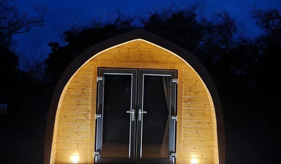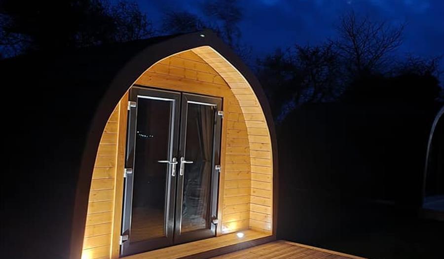 Brand new for 2022 Glamping pods equipped with one Double bed with Mattress and a sofa bed. Each pod has lighting, heating and double power sockets, kitchen unit, folding inside table and chairs, microwave, kettle, toaster and fridge plus an outside deck area with table and chairs.