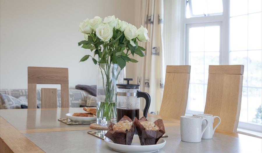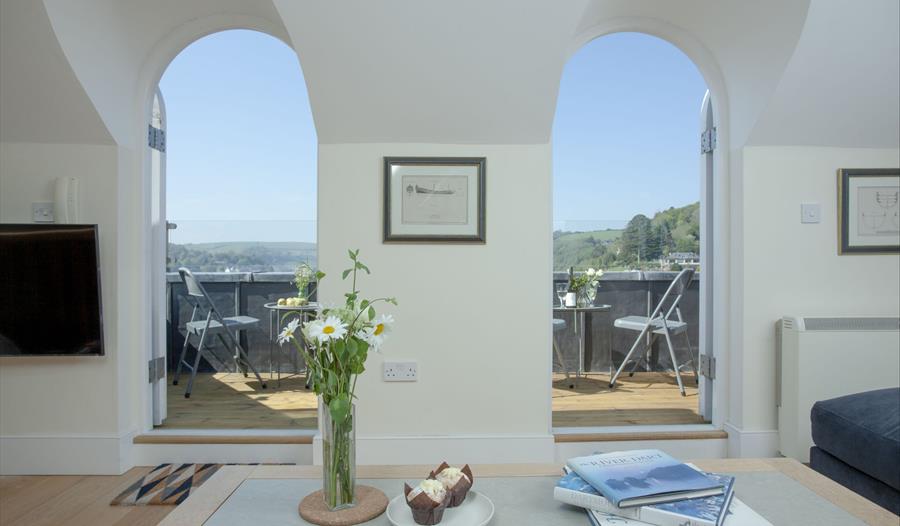 Four sublime bedrooms provide sleeping for up to eight guests with every room featuring deeply comfortable beds and their own unique perspective of the river, while upstairs the open plan kitchen and dining room creates the perfect place to prepare and share delicious home cooked meals together. Thoughtfully designed to maximise every inch of its riverside position, this room is also furnished with two lovely sofas where guests can enjoy post-supper relaxation and an evening drink or two while taking in the magnificent views of the that stretch from the river mouth across to Dartmouth's Royal Naval College and on.